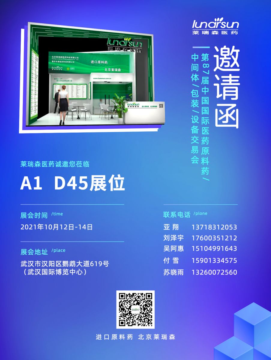 Wuhan API Exhibition Time: December 14, 2021 Location: Wuhan Booth number: A1 D45 Welcome new and old customers to visit and negotiate!